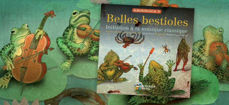 Belle bestioles plonge le lecteur et l’auditeur dans le monde fascinant des araignées, papillons, guêpes, grenouilles… Beaucoup de ces bestioles, que ce soit des insectes ou de petits animaux, ont nourri l’imaginaire des musiciens de toutes les époques et les ont inspirés. L’album musical débute de manière convaincante sur une œuvre de Nikolaï Rimski-Korsakov où le son du violon se transforme littéralement en vol de bourdon! Des œuvres de Beethoven, de Bartok, de Ravel, de Haydn et de plusieurs autres compositeurs feront découvrir la musique classique aux enfants en les initiant à ce répertoire d’inspiration animale.
