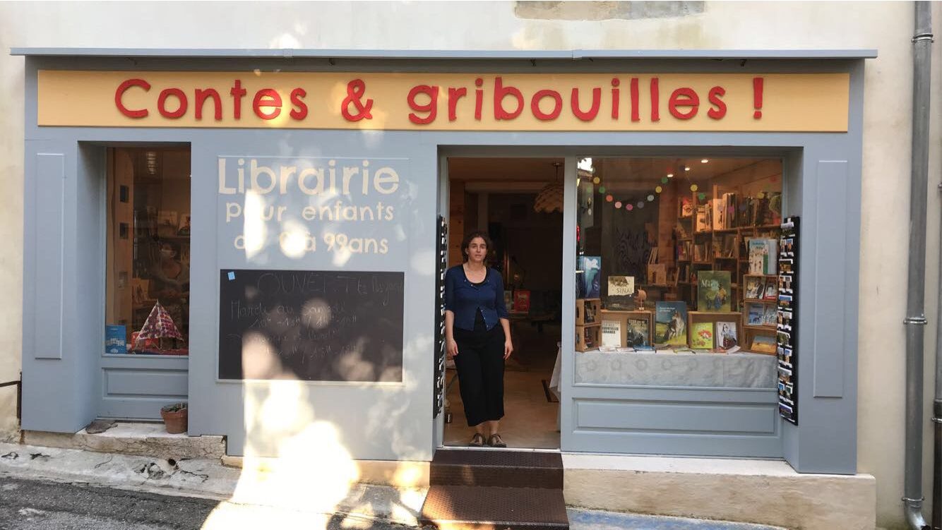 Contes et gribouilles est une librairie indépendante spécialisée pour les enfants de 0 à 99 ans, elle se situe en France dans l’Aude à Montolieu, un village vivant de 800 habitants qui réunit deux musées, des bouquinistes et des artistes plasticiens.