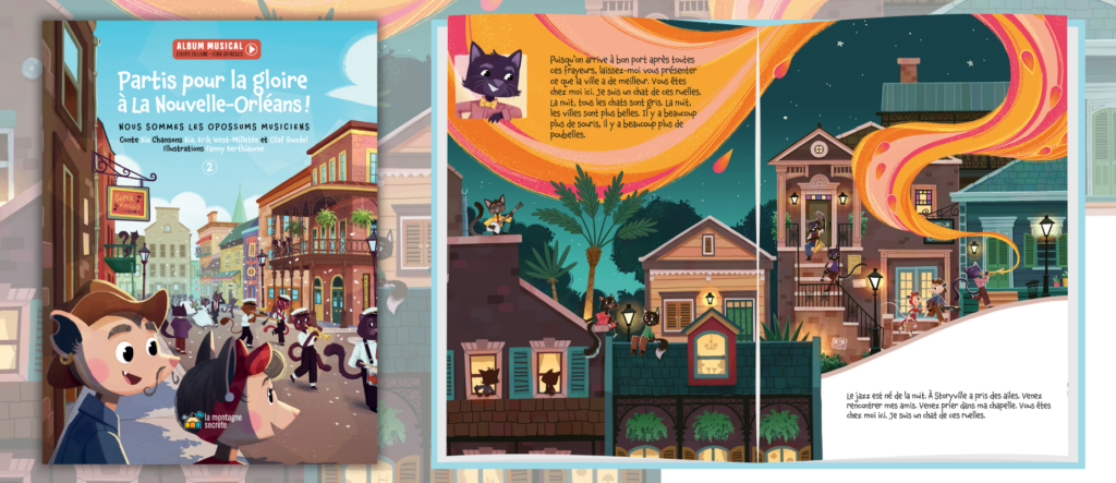 Le livre comprend aussi des notes explicatives qui permettent d’en savoir plus sur la culture musicale et les coutumes de la région. Un code QR est inclus pour écouter la narration du conte et les deux chansons : Chat de ruelle et Oh, When the Saints.