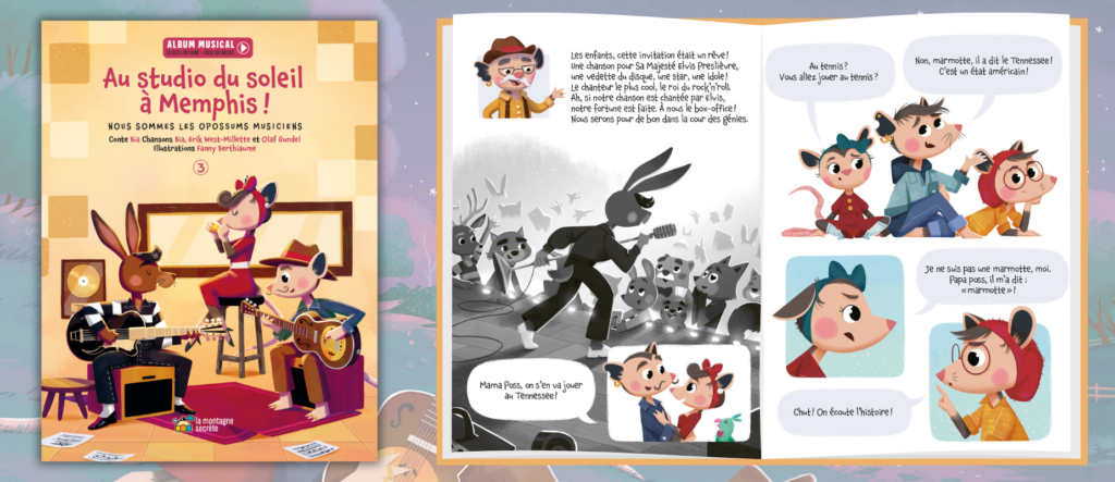 Dans ce tome 3, Mama et Papa Poss remontent le Mississippi à bord du Delta Queen jusqu’à Memphis au Tennessee. Le roi du rock’n’roll, Elvis Preslièvre, souhaite que nos talentueux opossums musiciens lui composent son prochain succès. En passant par Beale Street et Graceland, les deux musiciens opossums prennent un nouveau rendez-vous avec la gloire !