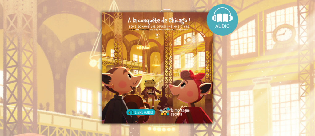 Disponible en livre audio seulement – C’était une nuit de tonnerre et d’orage avec le vent qui soufflait en rafales… Mama et Papa Poss étaient bien blottis au coin du feu sous une couverture en laine de mouton lorsque, tout d’un coup, ils entendent : bam, bam, bam ! À la porte se retrouve une pauvre grenouille-taureau qui cherche à s’abriter de la tempête. Ce ouaouaron bluesman leur explique qu’il se dirige vers Chicago où il compte se joindre aux musiciens légendaires Muddy Panthère, Bonobo Didley et le Loup Hurlant. Et voilà le début d’une nouvelle aventure pour nos marsupiaux amoureux qui ne peuvent résister à l’idée de se rendre à la « ville venteuse » pour savourer cette musique qui est triste et joyeuse en même temps !